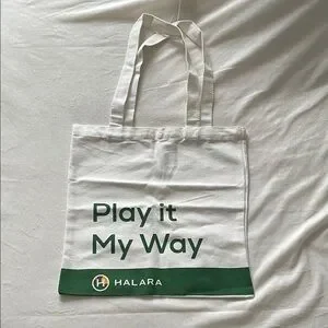 Chic tote bag with bold green text. Ideal for daily use. Bundle to save! 14.5 inches by 14.5 inches
