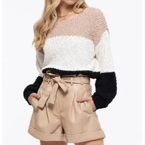 Just in time for sweater weather! You won’t want to miss this cozy oversized colorblock sweater! Super flattering for all body types with its slouchy style and fall color vibes. Round neckline & long sleeve. Fabric is a polyester/acrylic blend. Great quality and nice weight fabric