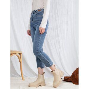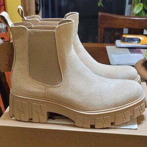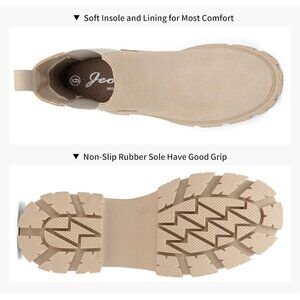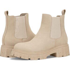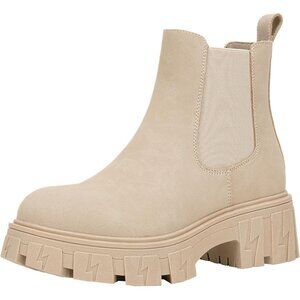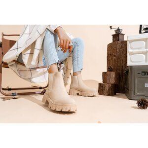 🆕Women Chelsea Lug Sole-9620-beige Synthetic leather Ankle Elastic Band Boot