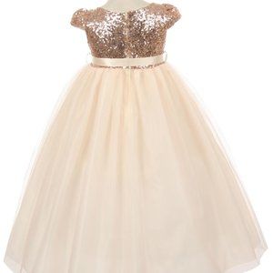 Cap Sleeve Sequince Glitter Bodice Flower Girls Dress.