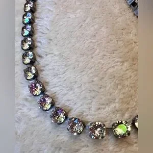 This stunning necklace features sparkling crystal stones set in a sleek silver design. Perfect for adding a touch of elegance to any outfit.