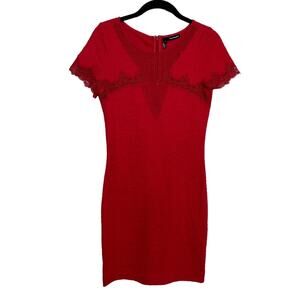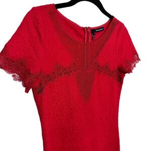 The Kooples Mini Dress size XS Cherry Red Lace Front Textured