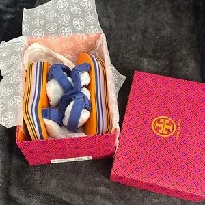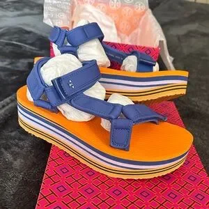 Authentic Tory Burch Platform sandals with vibrant colors. Brand new, never used.