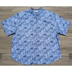 Tommy Bahama Men's Blue Foliage Leaf Hawaiian Print Size 2XLB. Very Good Used Condition.