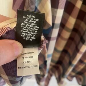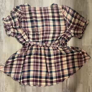 Torrid Georgette Surplice Puff Sleeve Blouse size 2 (2XL, 18-20) in purple plaid. Slight fraying on one belt loop. Shown in photo