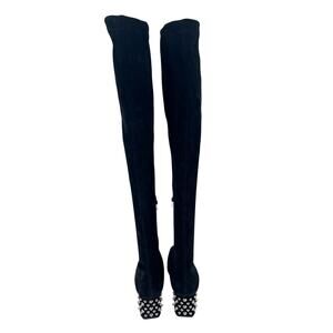 Christian Louboutin Veau Velours Spiked Study Stretch 55 Over The Knee Boots