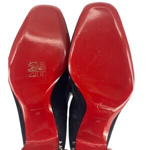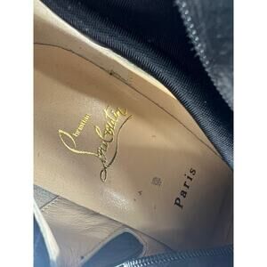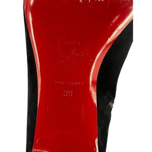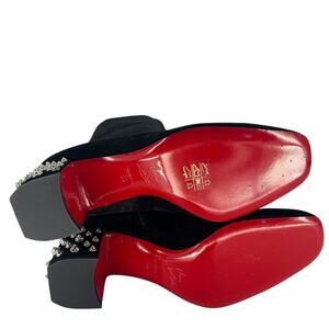 A bold yet elegant statement boot from Christian Louboutin, these over-the-knee Veau Velours Spiked Study Stretch 55 boots showcase the brand’s signature red lacquered soles and gleaming silver-tone spike studs at the block heels. Crafted in Italy from soft, slightly stretchy black suede for a glove-like fit, they rise to mid-thigh for a dramatic silhouette. The 55mm heel adds just the right amount of height for all-day wear, while the sleek construction flatters the leg and effortlessly elevates any look. Rare and coveted, this style is a standout in any luxury wardrobe.