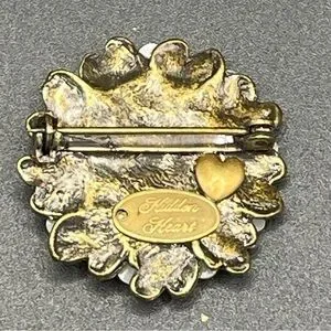 The brooch is not just a decorative accessory; it tells a story with its classic rolled gold safety clasp and an authentic oval brass tag engraved with “Hidden Heart” and a charming heart motif. 💕 Whether you're adding a touch of vintage glamour to your outfit or seeking a standout piece for your collection, this brooch is a must-have! 🌟