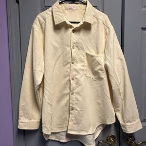 Stylish cream corduroy shirt with button-up front. Features a classic collar and chest pocket.
