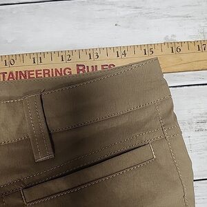 These Athleta active/hiking pants are perfect for the outdoor enthusiast looking for comfort and style. Featuring a zip, button, and drawstring closure, they offer a secure fit while the mesh lined pockets provide extra ventilation. Made from a blended fabric of nylon and spandex, these flare-fit pants are designed for activities like hiking, running, and yoga, with added features like a zip pocket, adjustable waist, and stretch for ease of movement. Whether you're hitting the trails or the gym, these versatile pants in size 4P are a must-have for your activewear collection.