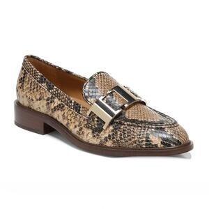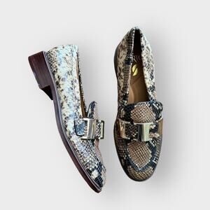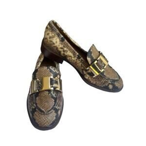 NWT Franco Sarto Johana leather loafer with gold metallic hardware strap, 1.25" chunky heel and rounded toe in a beautiful faux snake skin. Perfect with ankle jeans, dressed up for the office or a casual day out.