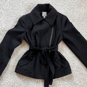 HALOGEN Wool Blend Moto Style Belted Jacket Black XS