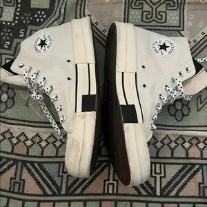 Stylish Converse DRKSTAR high-top sneakers. Features star-patterned laces. Classic white design.