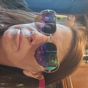 NWT Betsey Johnson Gold Heart Sunglasses Multicolor Reflective Lenses w/ gently used Betsey Johnson Case