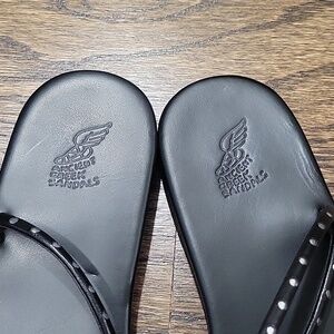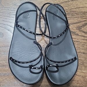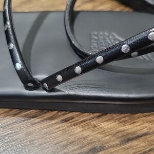 Sleek black sandals with minimalist silver studs straps. Ideal for casual outings.
