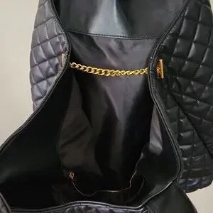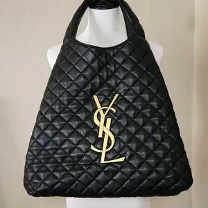 Yves Saint Laurent Black Quilted Tote with Gold Logo