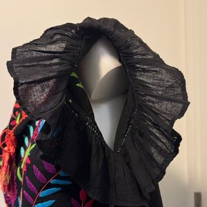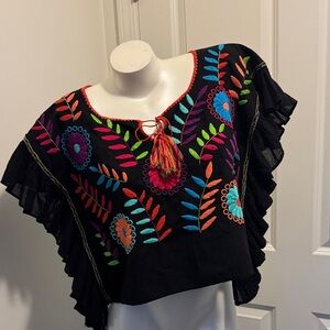 Make a statement with this vibrant blouse featuring stunning multicolor embroidery on a classic black base. Perfect for adding a pop of color to any outfit.