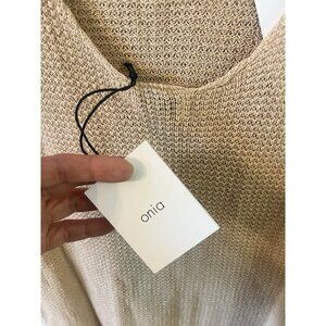 ONIA Dress Womens L Open Knit Linen Textured Swim Neutral Coverup Sweater NEW