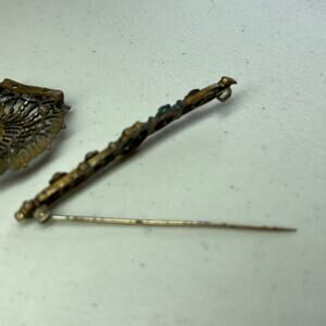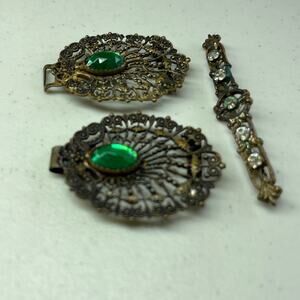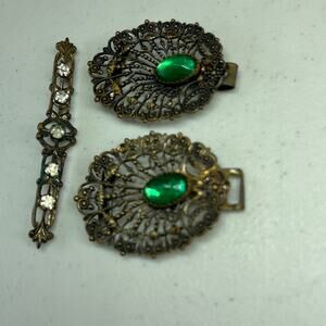 Vintage Antique Jewelry 3 Pieces Bar Pin and 2 pieces of Green Stone Pieces ?