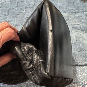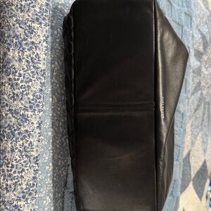 Elegant black leather bag with gold accents. Perfect for any occasion. In great shape only think is a little nick on the side bottom See picture and the buckle is magnetic and a little rubbed off. And it is lamb shin. Not even a year old. It can be a crossover or a shoulder bag . Medium size with a lot of space m.