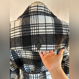 JouJou black & white plaid, double breasted peacoat.