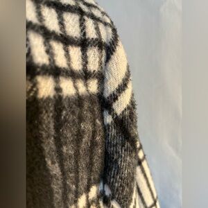 JouJou black & white plaid double breasted belted wool blend winter peacoat Sz L