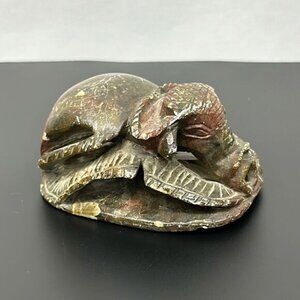 Vintage Egyptian Scarab Stone Carved Apis Bull Head Scarab with hieroglyphics