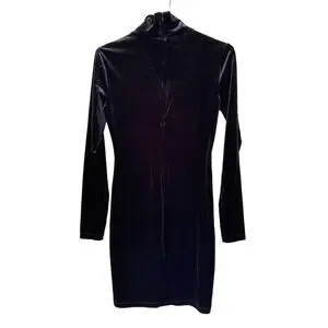 Pam & Gela by Revolve and Neiman Marcus Velvet Cut Out Iridescent Mini Dress in Black with faint shimmers of purple green and gold ft a soft velour touch, Keyhole open chest cut-out, long sleeves, mock turtleneck, mini fit, invisible back zipper. Perfect Holiday season party dress!