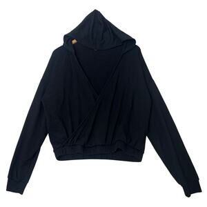 Beyond Yoga Cross Your Heart Wrap Hoodie Black sz L Activewear Pilates Lounge