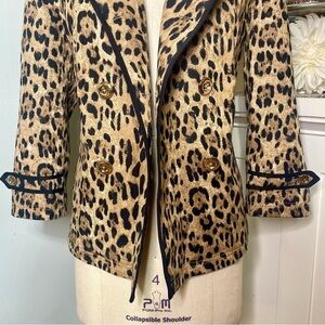 WHBM White House Black Market Leopard Cheetah Animal Print Swing Jacket Double Breasted Blazer Jacket Dressy Fall Style Tan Black Gold