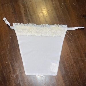 Set of three clip-on mock camisoles with lace trim. Includes black, cream, and white colors. Easy to attach for added coverage. Like new condition from a smoke free dog friendly home.