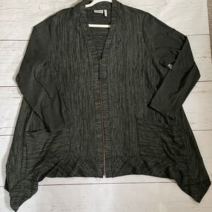 LOGO Lori Goldstein Zip Up Dark Green Cardigan with Shark Bite Hem, size 1X