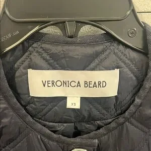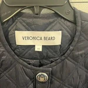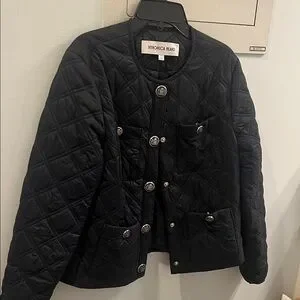 Chic black quilted puffer by Veronica Beard. Features stylish button details and practical pockets.