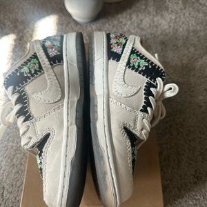 Nike N7 SB DUNK Floral Embroidered Sneakers - Black and White M5/W6.5