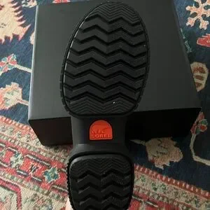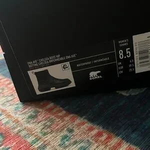 Sleek black Chelsea boots by Sorel. Waterproof and super durable sole. These are size 8.5, but definitely are more a size 9. Too big for me!