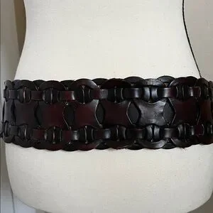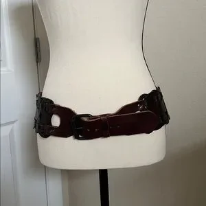 Stylish brown leather belt with a sturdy buckle. Perfect for adding a touch of elegance to any outfit.