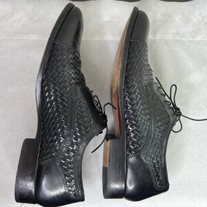 Elegant black leather oxford shoes with a textured design. Perfect for formal occasions.