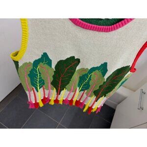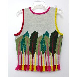 This Rachel Antonoff Rainbow Chard Shell Sweater Vest is in great condition! Features a colorful leafy greens / lettuce print (vegetable / veggie print). Cotton, round neck, sleeveless, tank style, tassel fringe detailing, cropped length.