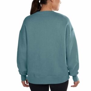 Comfortable teal sweatshirt by Champion. Features a classic logo on the chest and sleeve. Loose fit.