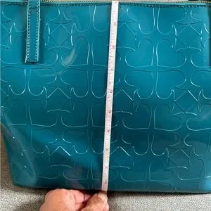 Reposhing this item I purchased from @jspbtg123. Loved it, but ready to rotate for something new. See pictures for a few callouts: on the corners, one slight scratch on the bottom, very clean inside except for maybe one spot in the fabric, but beautiful large tote. Measures: 18-3/4” x 10” x 8”