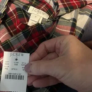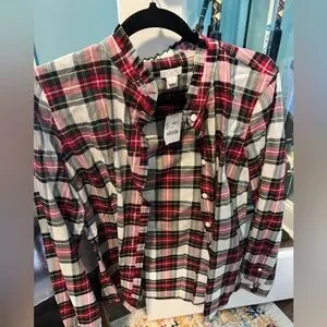 Vibrant plaid shirt by J. Crew. Features a blend of red, green, and white tones. Perfect for casual wear.