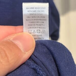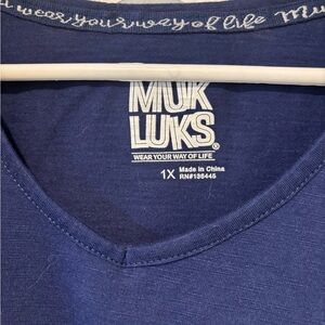 Classic navy V-neck top by Muk Luks. Perfect for everyday wear. Washed, never worn. 26” long, 25” across chest. 50/50 cotton/polyester blend. Smoke-free home, fast shipping.