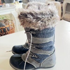 Cozy boots with faux fur trim. Lace-up design. Ideal for winter wear.