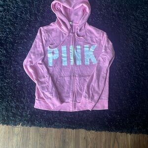 Soft and comfortable hoodie. Features classic PINK branding. Perfect for casual wear.