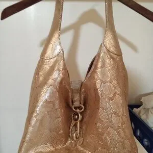 Dooney & Bourke Gold/Silvertone Snakeprint Leather Hobo Bag
