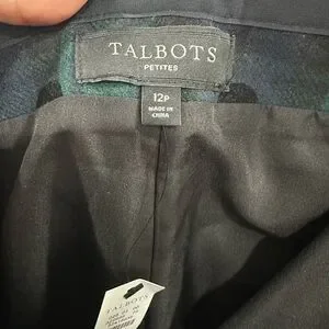 Talbots Navy Blue & Green Plaid Midi Skirt