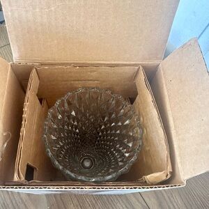 Comes in the original box with cardboard insert — vase appears unused and in excellent condition. Box shows only light shelf wear from storage. A timeless mid-century pattern perfect for displaying flowers, decorating a table, or adding to a vintage glass collection.