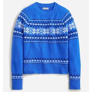 J. Crew Fair Isle Crewneck Sweater Supersoft Yarn Blue Wool Blend Women's