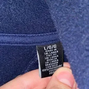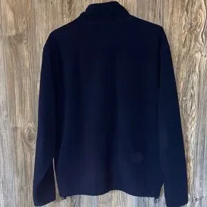 Description: in great shape with no flaws. Fleece material, soft and comfortable. Great for layering. Dark navy blue color, close to black.