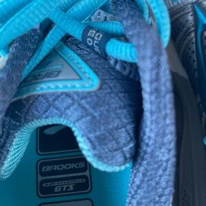 Please read all description, measurements and see all pics. These women’s running shoes are in great, preloved condition. The only call out to mention is what looks yo be maybe a glue? spot on the instep of the right shoe, see 11th pic. I’m not sure what else it could be, and it may come out with some scrubbing I am not sure. Both shoes are fully intact and the shoelaces are in excellent shape, no fraying. These shoes do come with their original box, as shown in pics. From the GTS 13 line. Say “mogo” on the back. They are a wide width. The colors of the shoes according to the box is dark denim, bachelor button and silver. The insides are very clean and have no odors. Soles show minor/normal use. I have included 12 pics of different aspects of the shoes to look at.